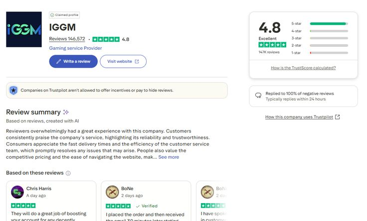 Trustpilot Reviews Currently, IGGM has a 4.8 rating on Trustpilot and over 145,000 user reviews, with the majority of these ratings being 4-5 stars. IGGM frequently cites its high ratings and numerous reviews as positive evidence of its stable service. Therefore, for Diablo 4 paying users, it's clear that they are generally very satisfied with IGGM's service.